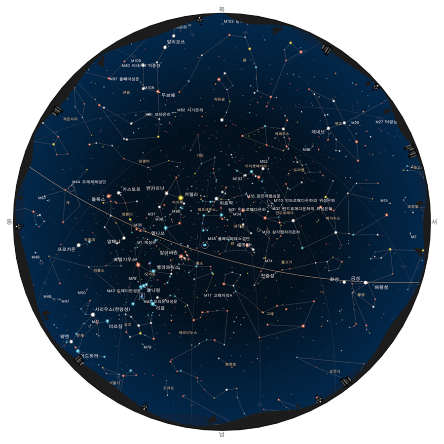 2017년 1월 천체관측시간에 망원경으로 볼 수 있는 대표적인 천체들과 1월 별자리입니다.