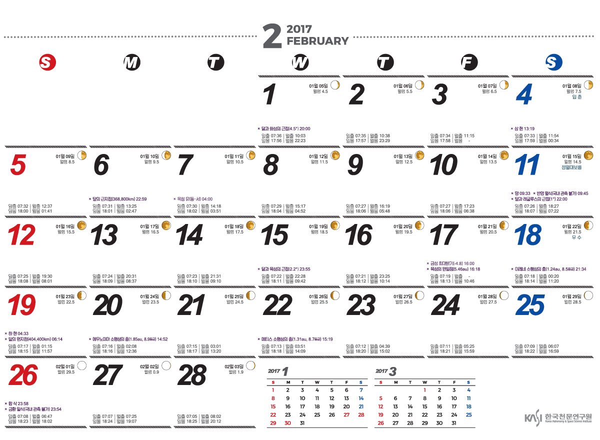 2017년 2월 천체현상 및 별자리