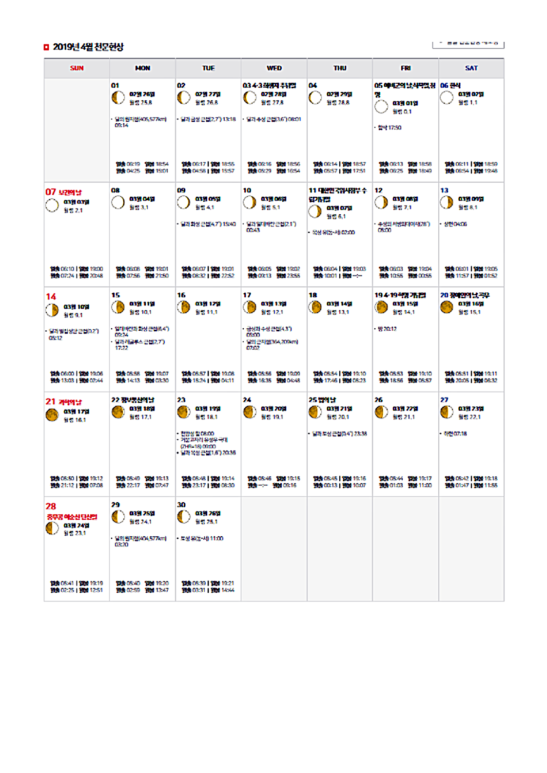 2019년 4월 별자리와 천문현상입니다.