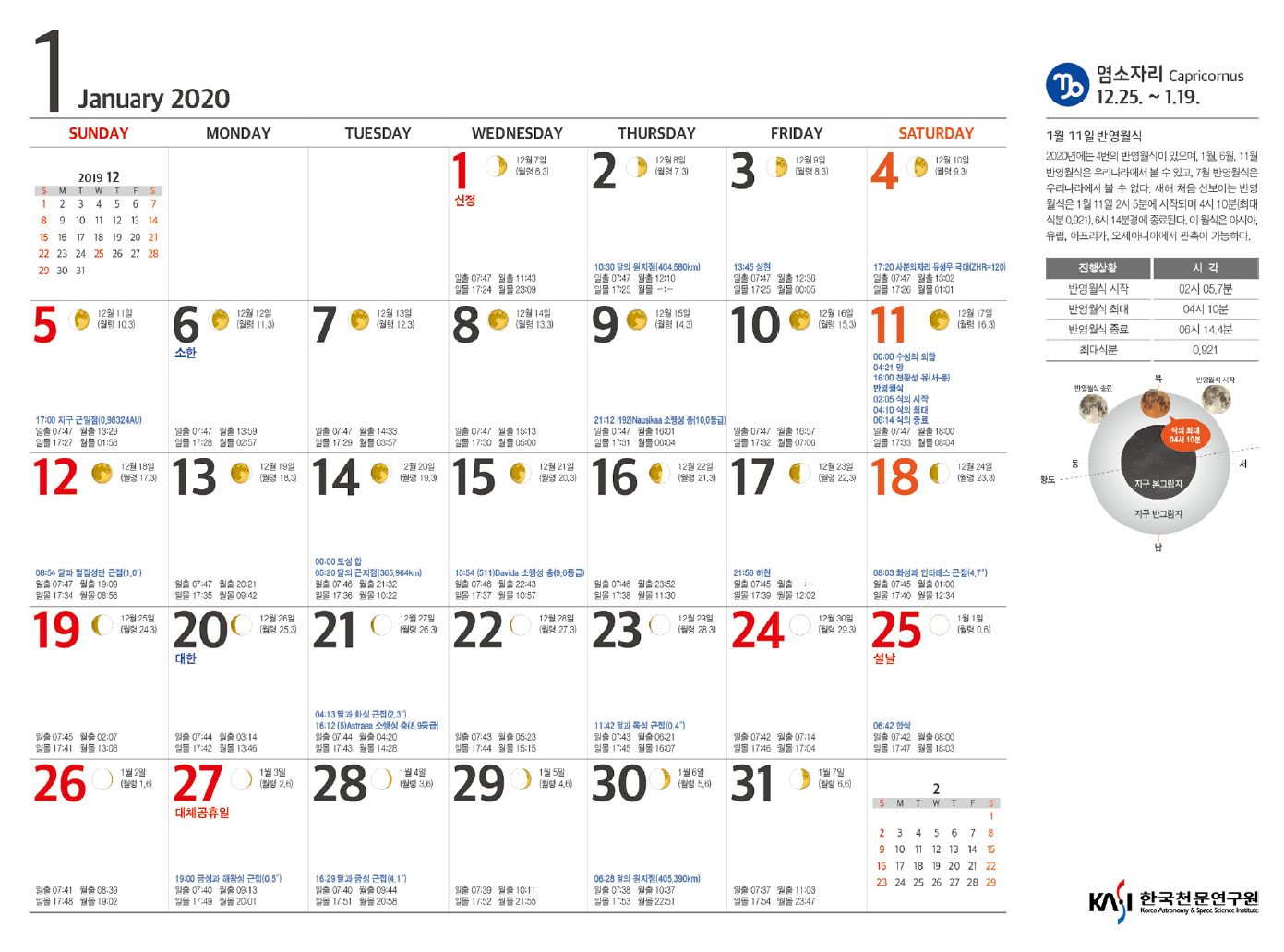 2020년이 시작되었습니다. 올해도 다양한 천체현상과 행사로