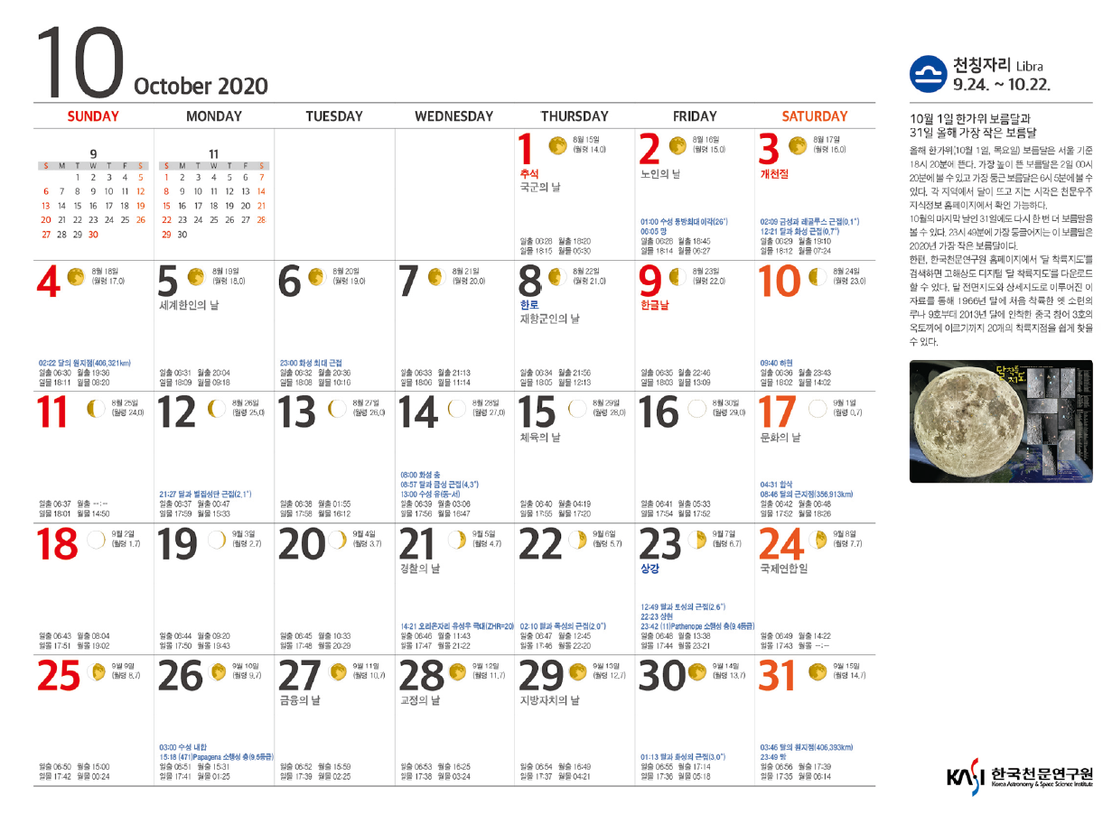 2020년 10월 천체현상 및 주요 천체관측대상입니다.