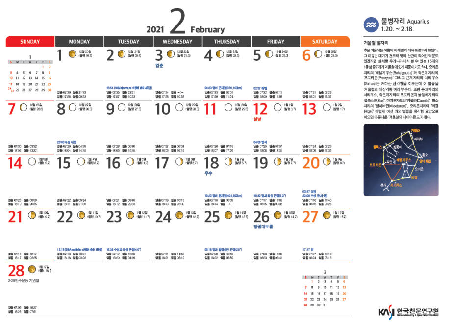 2021년 2월 천체현상 및 주요 천체관측대상입니다.