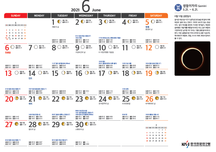 2021년 6월 천체관측대상과 천체현상입니다.