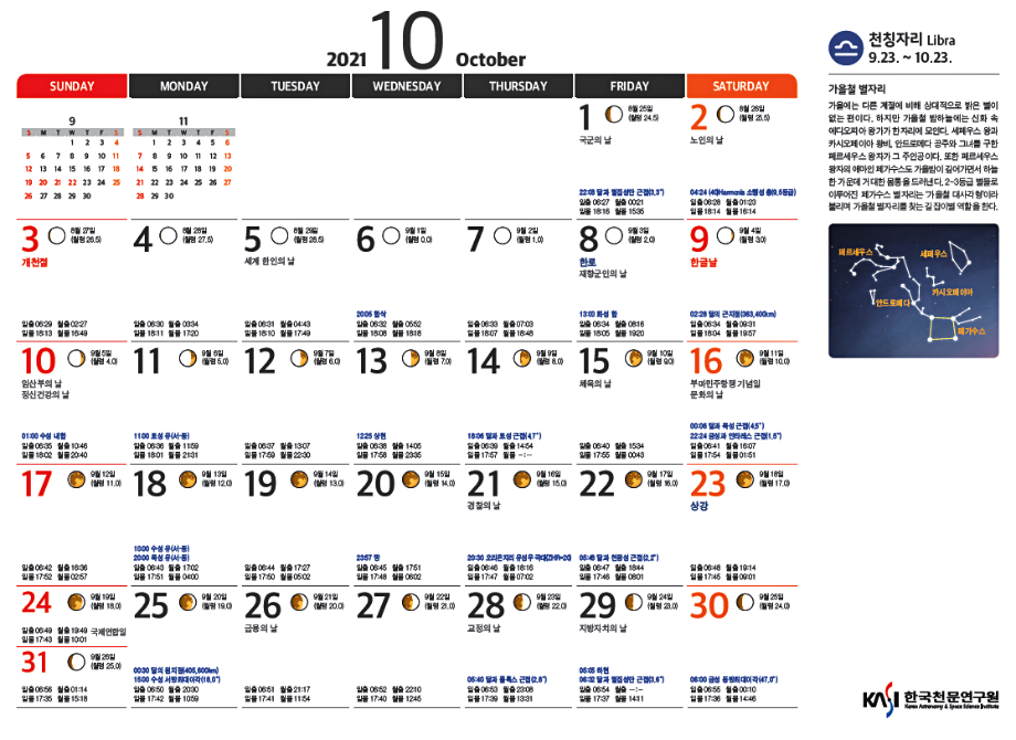 천체현상에 대한 자료는 한국천문연구원에서 제공하였습니다.