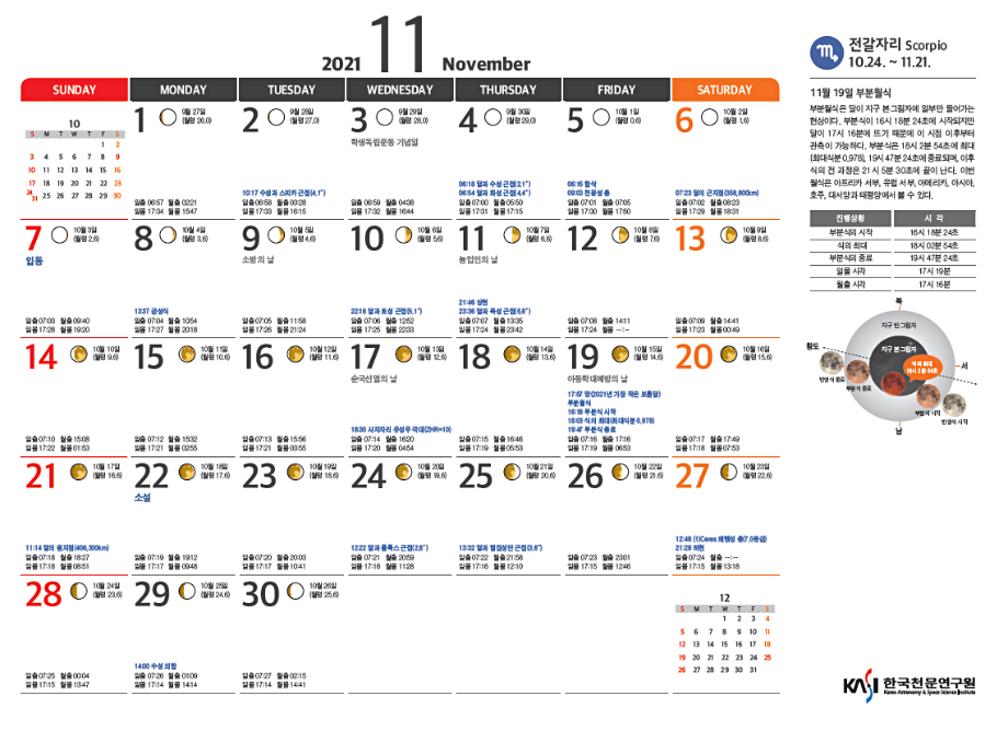 천체현상에 대한 자료는 한국천문연구원에서 제공하였습니다.