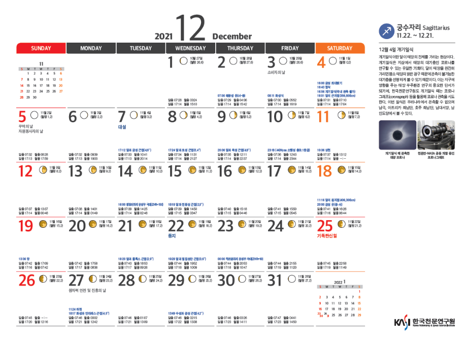 12월 천체현상은 한국천문연구원자료에서 제공하였습니다.