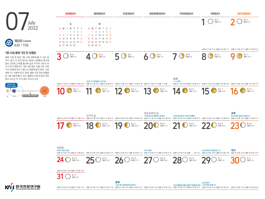2022년 7월 천체관측대상과 천체현상입니다.