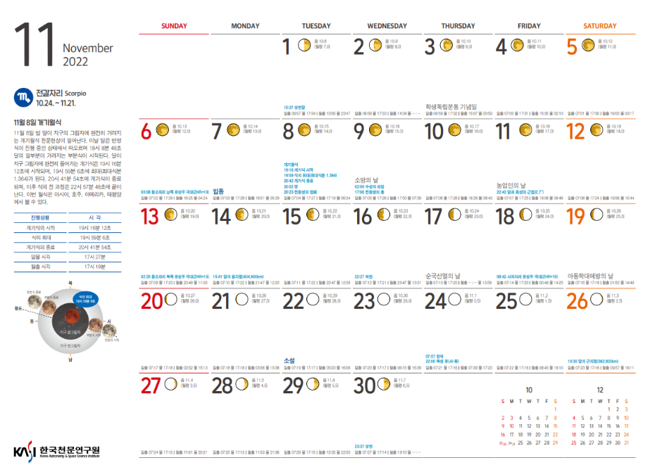 2022년 11월 천체관측대상과 천체현상입니다.
