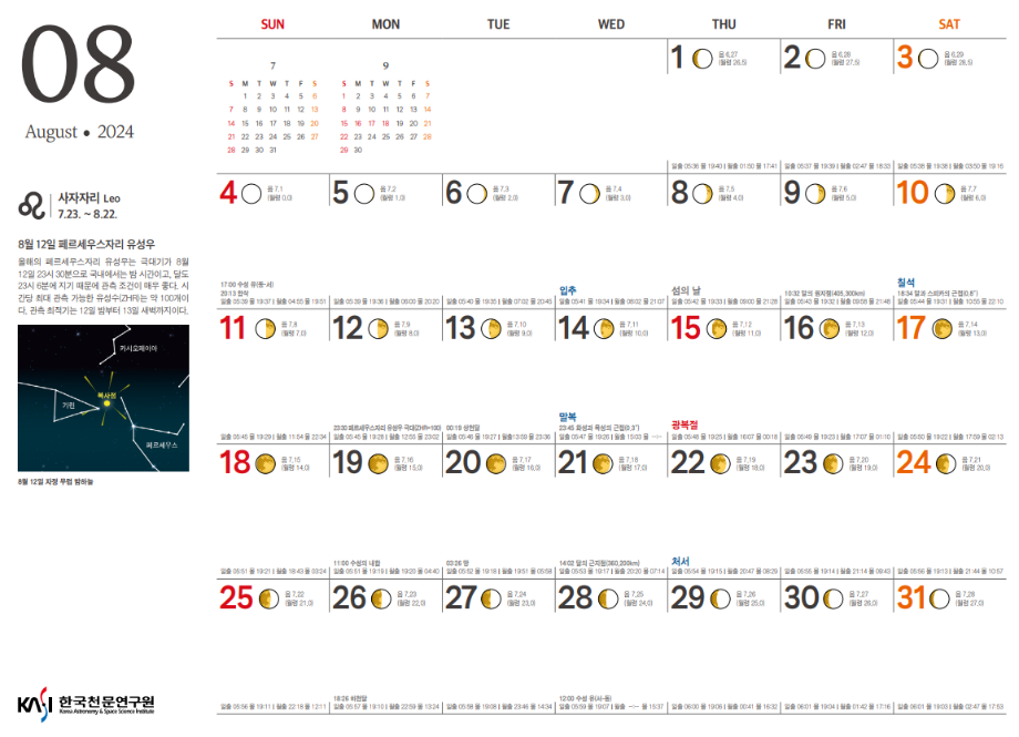 페르세우스 유성우 행사는 8월 11일에 진행됩니다.