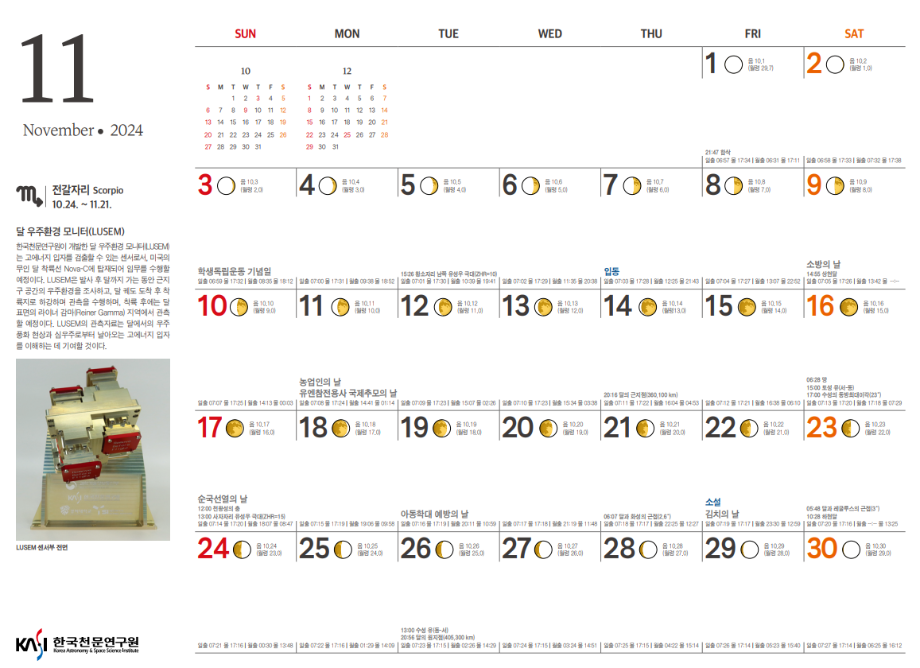 2024년 11월 천체관측대상과 천체현상입니다(11월15일 20시 기준)
