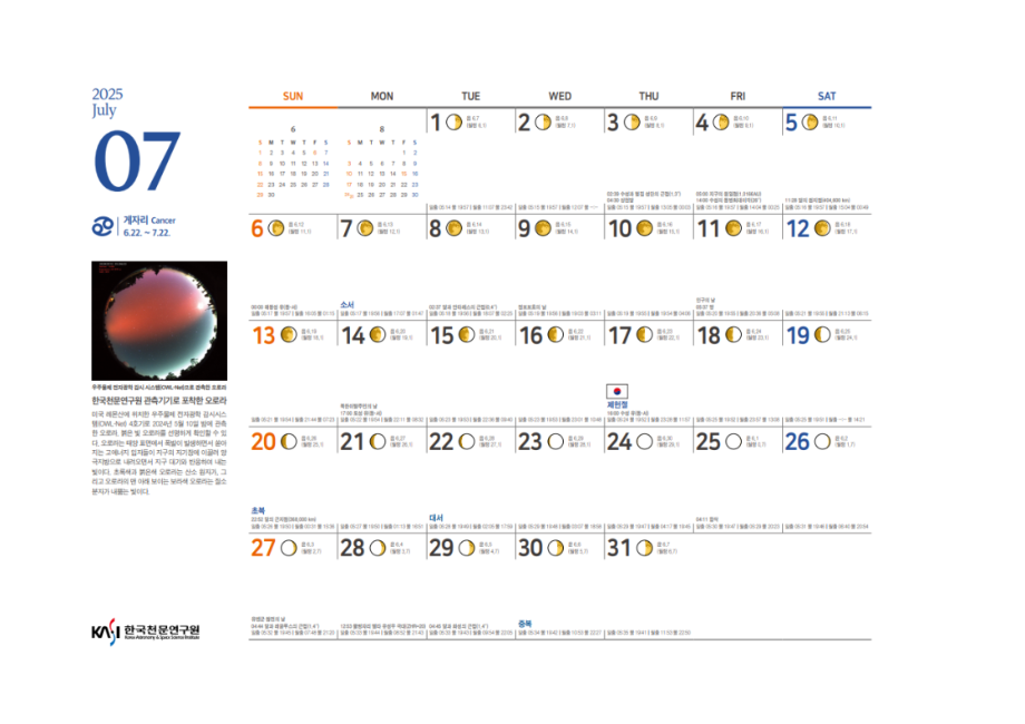 2025년 7월 천체관측대상과 천체현상입니다(7월15일 21시 기준)