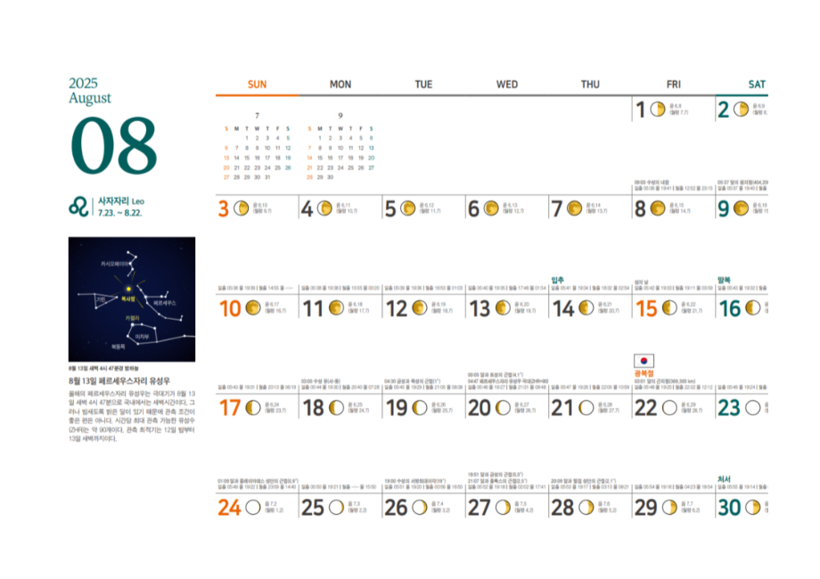 2025년 8월 주요천체관측대상 및 천체현상